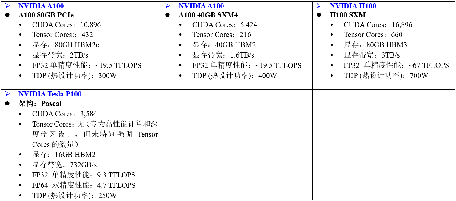 1.1 目前常用于深度学习的GPU型号和性能参数