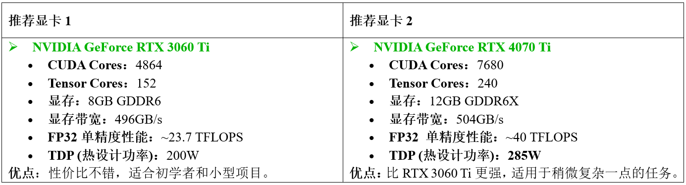 如果你刚开始接触深度学习,或者只是做一些简单的实验和小规模模型训练,那么以下显卡可能就足够了: