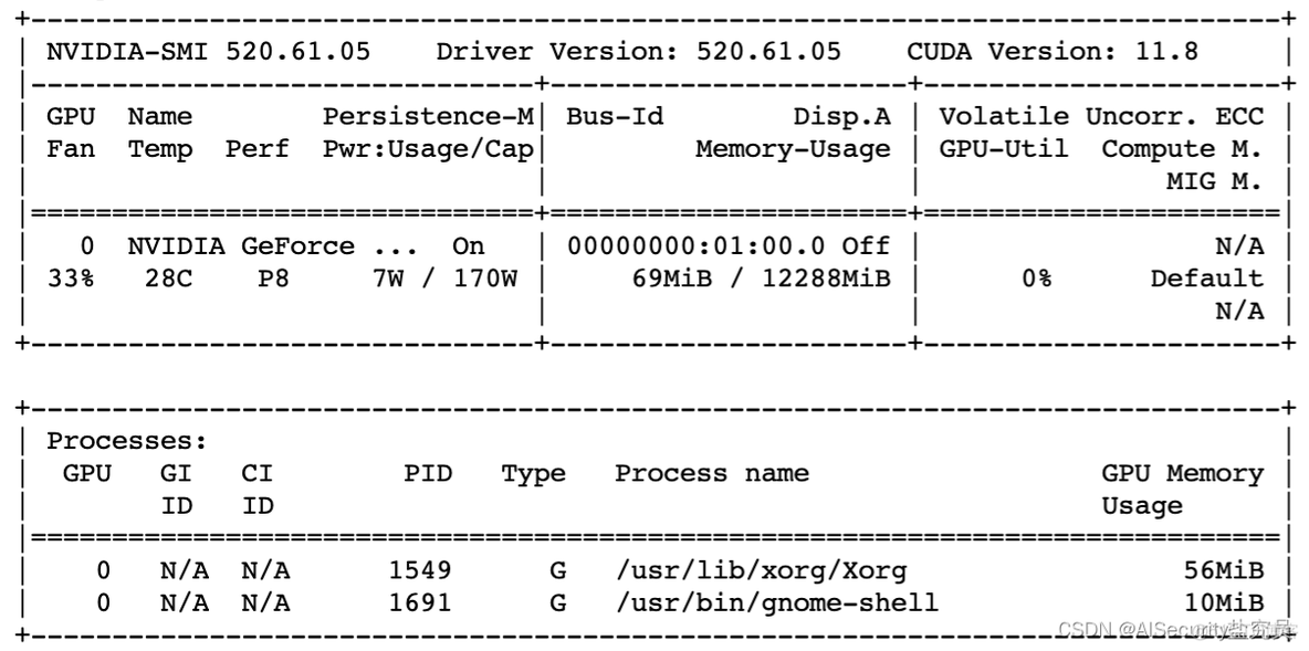 nvidia-smi命令。这个命令会显示当前系统上的NVIDIA显卡驱动版本以及相关信息。 - 记下显示的 NVIDIA 驱动版本号。例如,版本号可能类似于