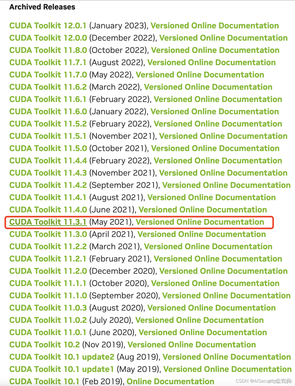 CUDA官方下载链接:https://developer.nvidia.com/cuda-toolkit-archive