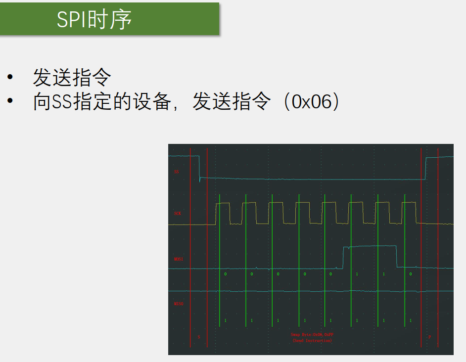 因为写使能是单独的指令,不需要跟随数据,SPI只需要交换一个字节就完事了,所以最后在SCK下降沿之后,SS置回高电平结束通信。