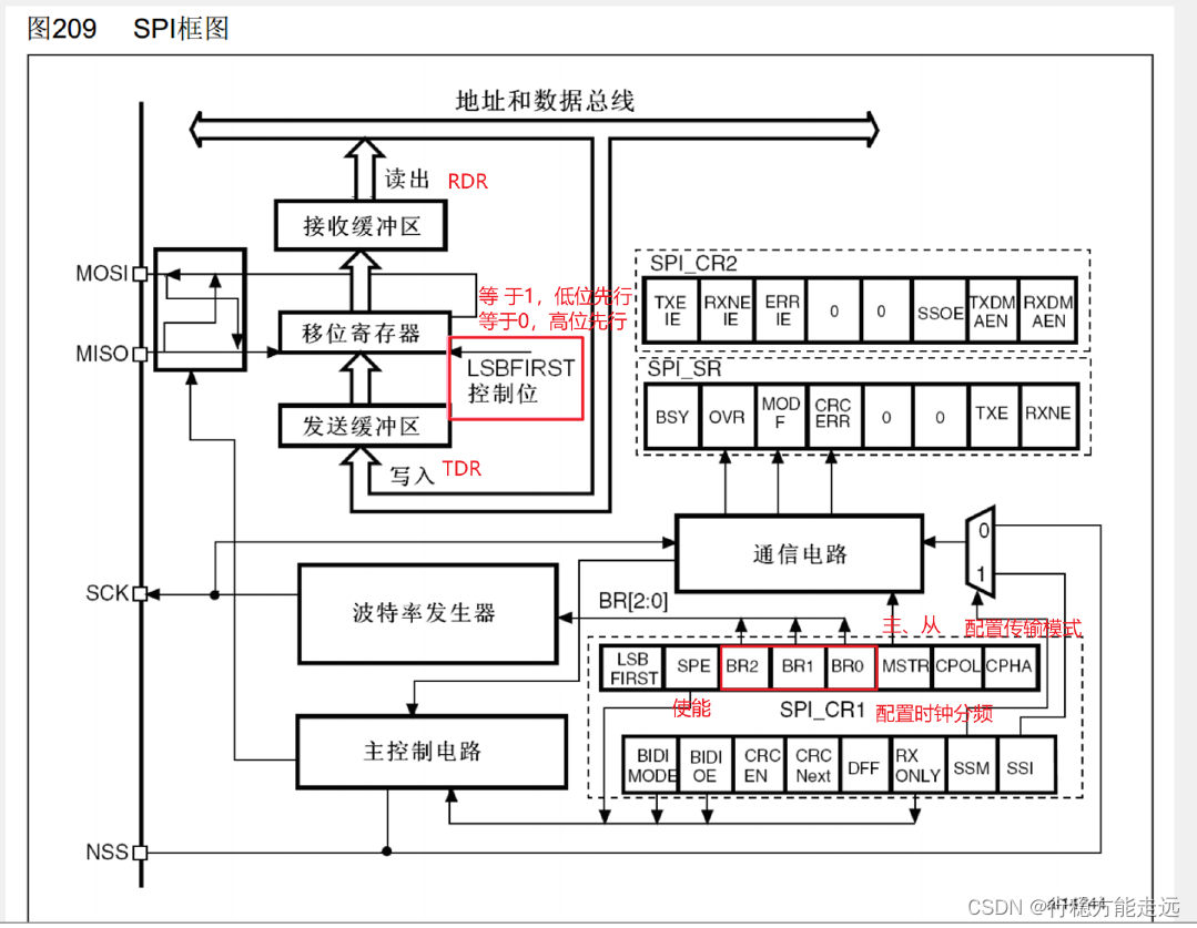 - DI引脚,对应MOSI,是SPI主机输出从机输入;