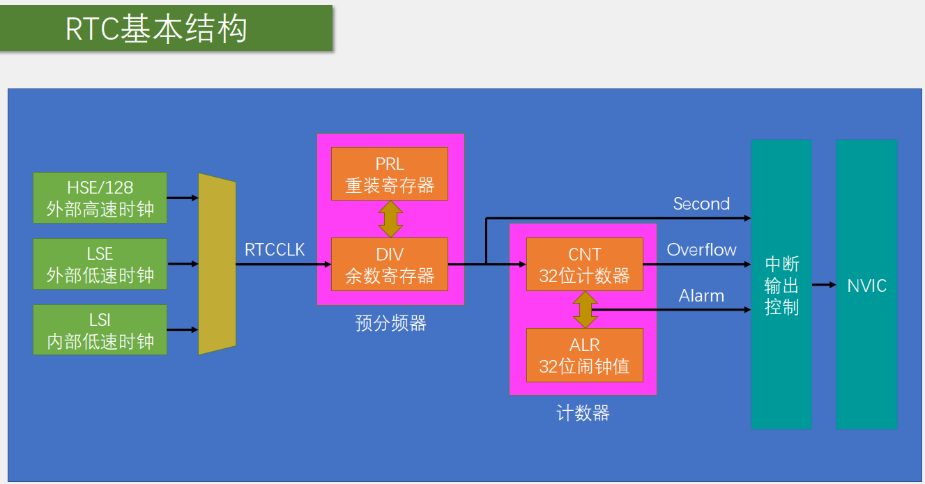 - 首先,从左下角开始看,时钟来源是PCLK1,也就是APB1的时钟,这个时钟默认是36MHz,所以就是36MHz的时钟进来,之后还是先经过一个预分频器进分频,这个和独立看门狗的预分频器,定时器的预分频器都是一个作用,就是灵活的调节后面计数器的时钟频率,同时预分频系数也是计算计数器溢出时间的重要参数;